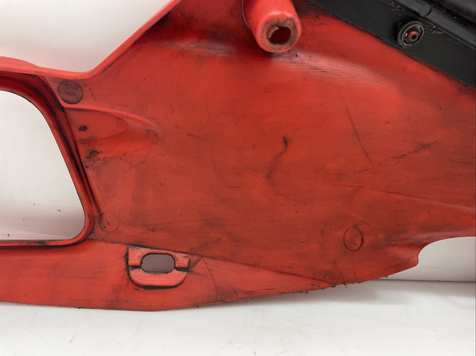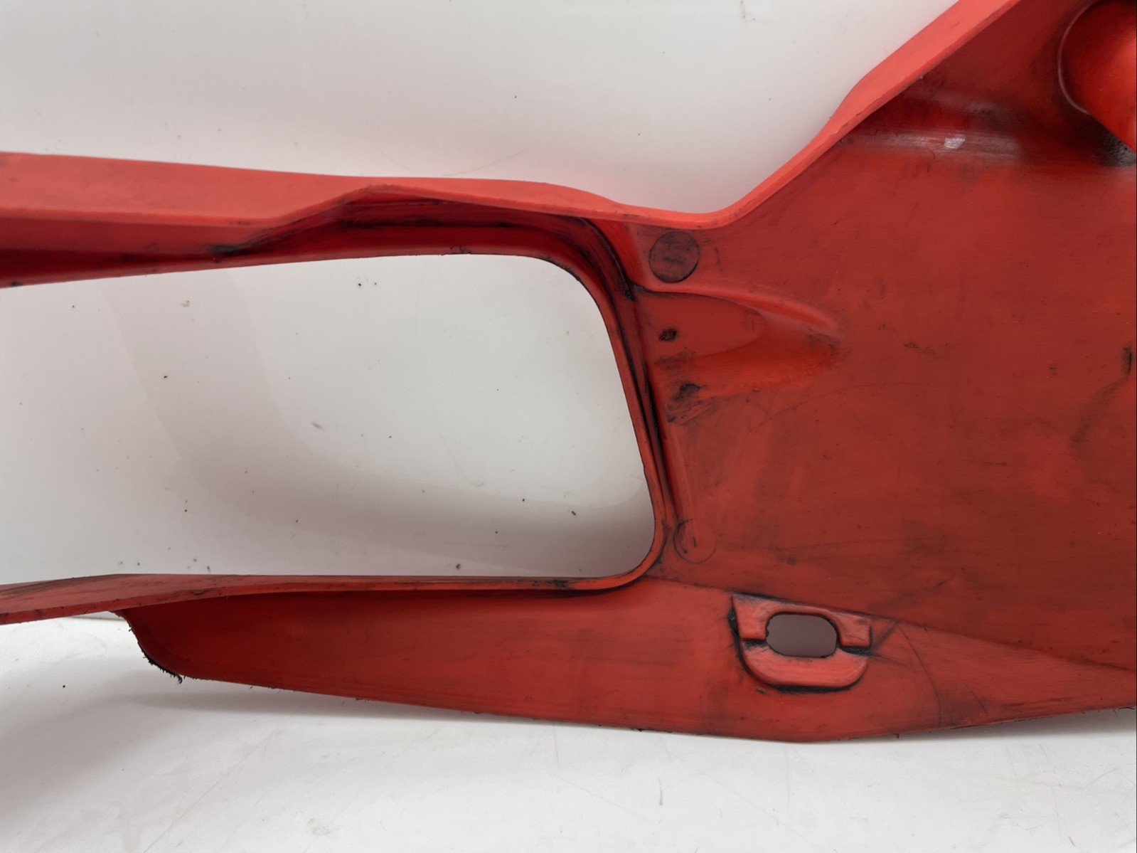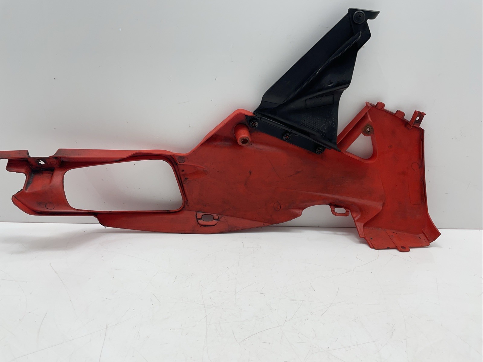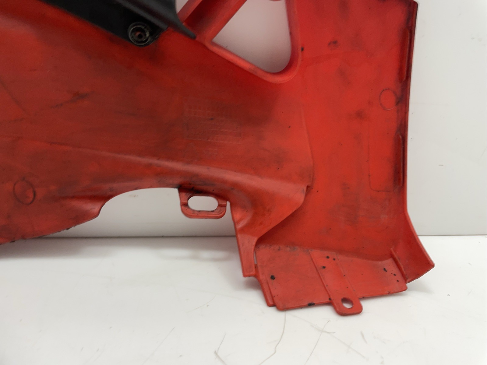 Left side belly pan fairing. Marks, scratches and stickers torn as shown. Some minor cosmetic marks may be present (see photos for details)