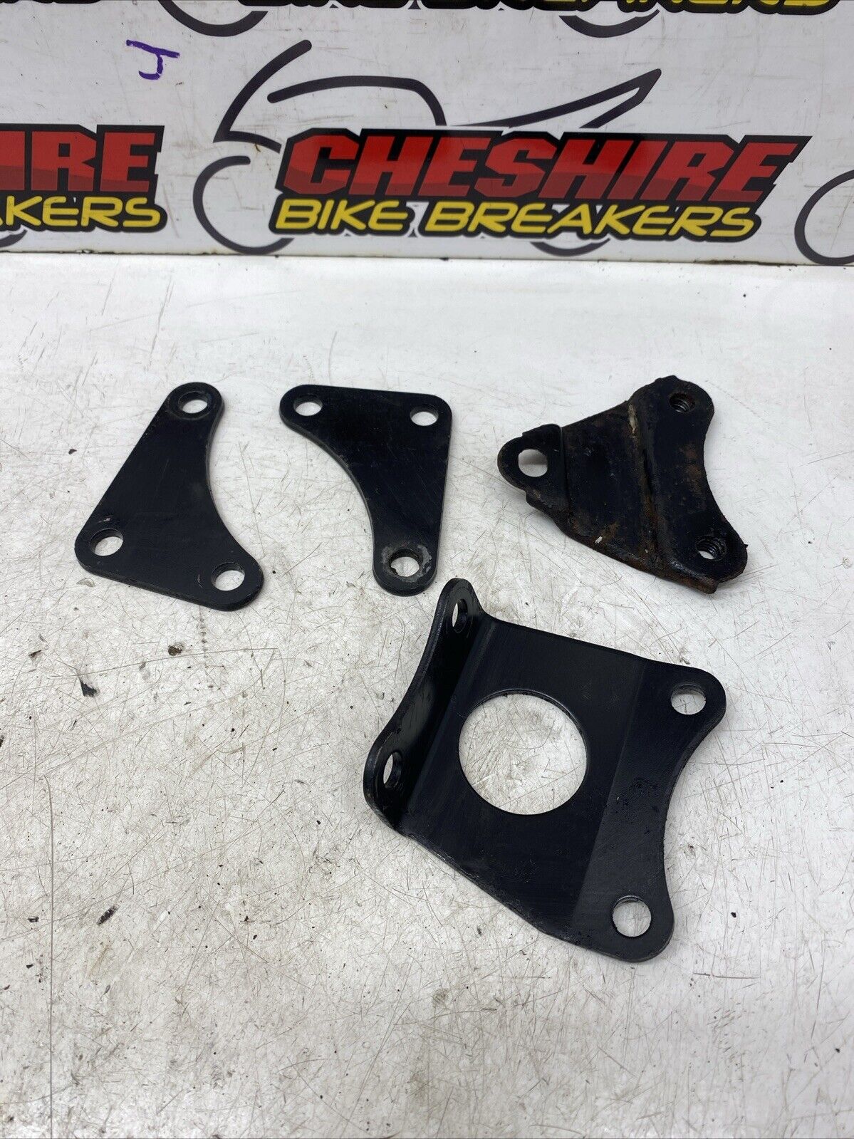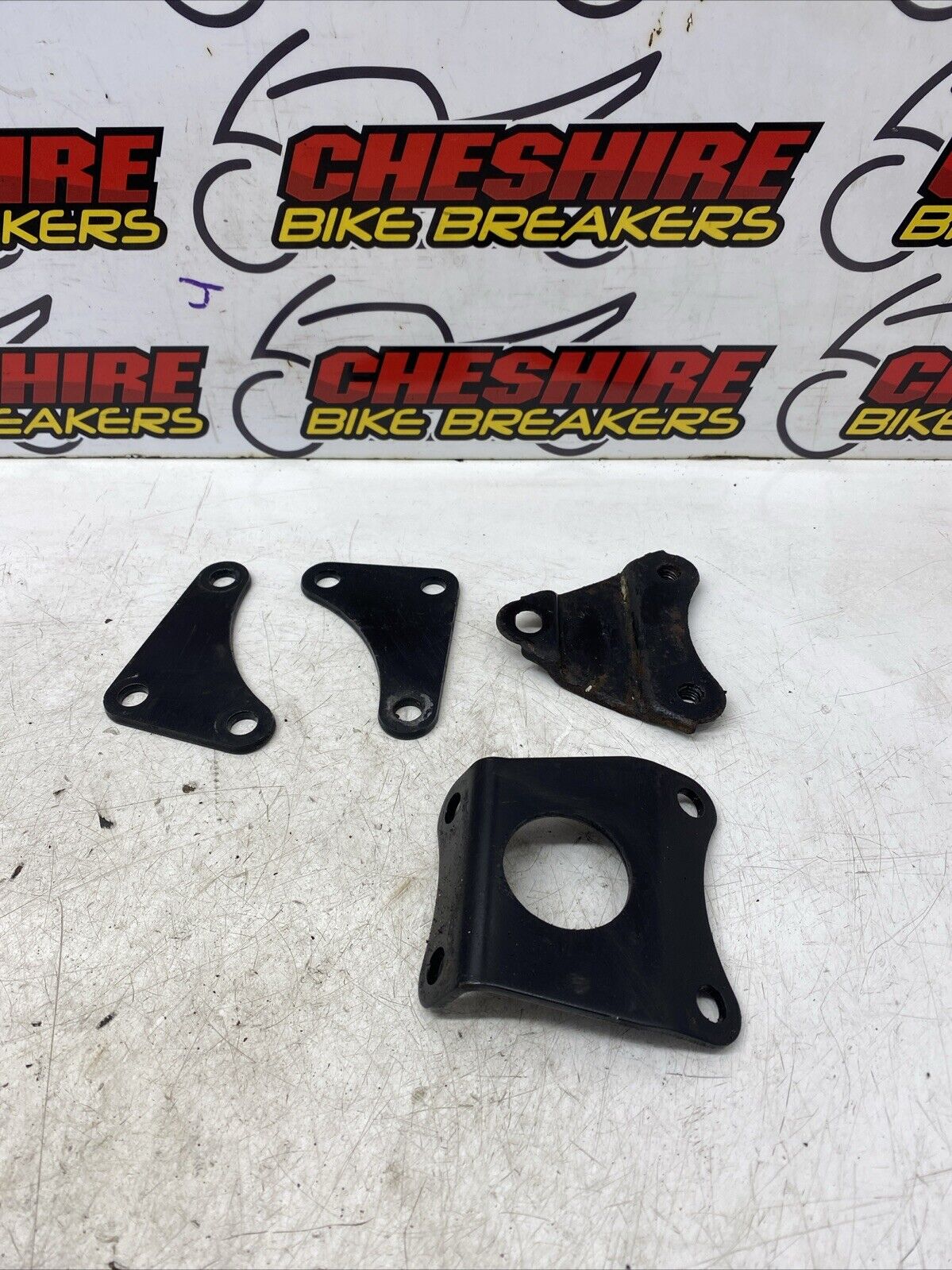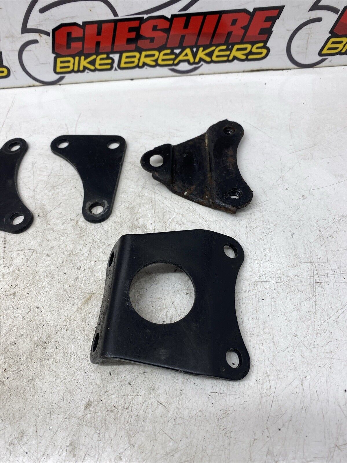 Various mounts brackets. Some light marks maybe present, please see pictures for more of a detailed view. Removed from a 1988 motorcycle. This item comes with a 60 day warranty included.