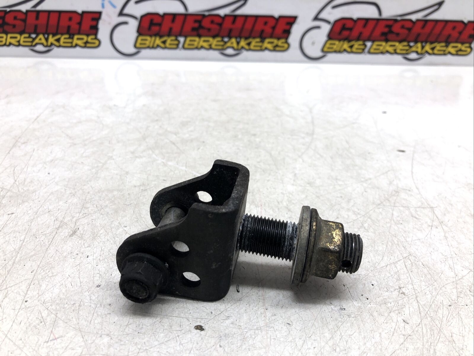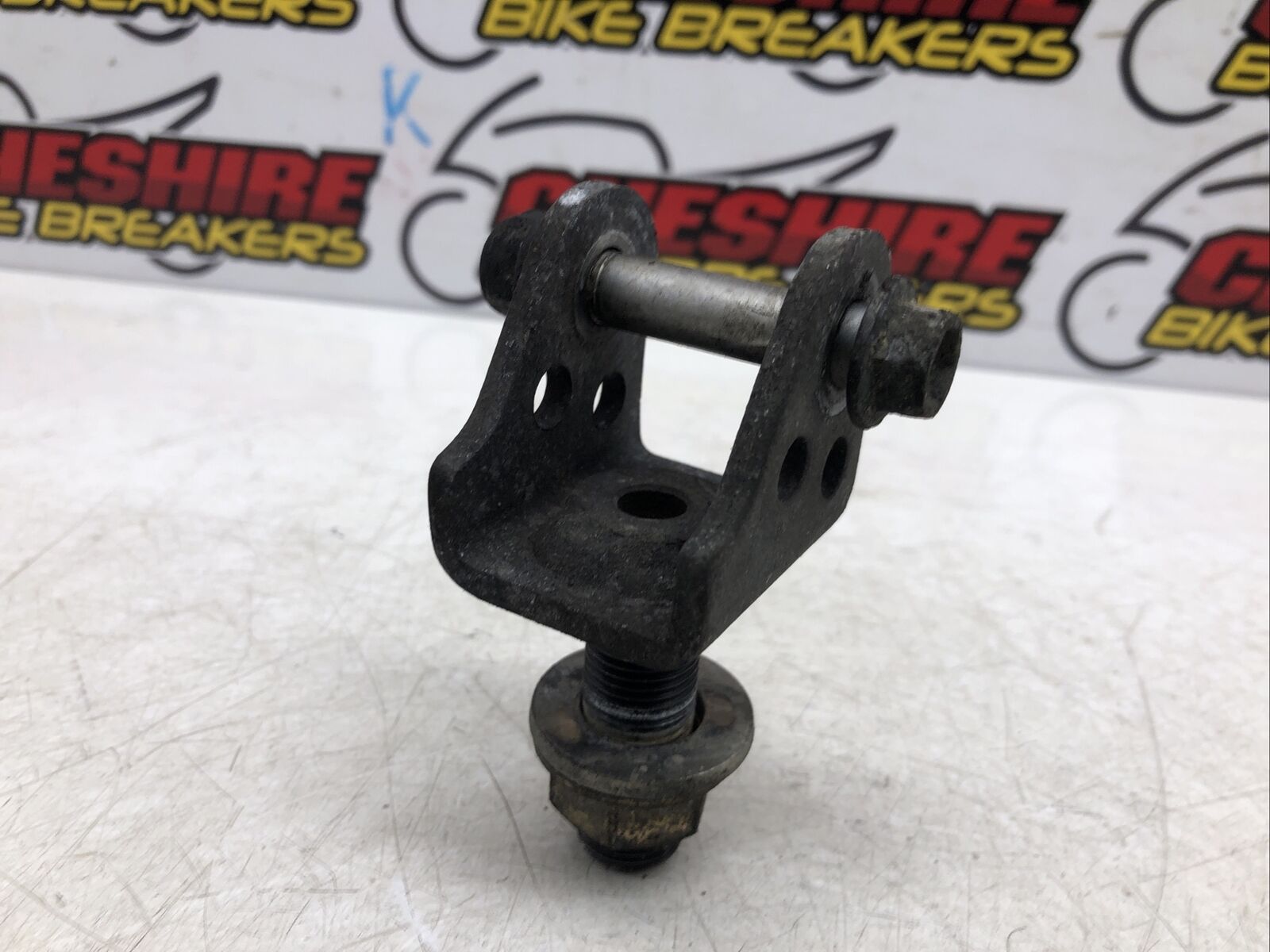 Shock absorber bracket. Some light marks maybe present, please see pictures for more of a detailed view. Removed from a 2004 motorcycle.  This item comes with a 60 day warranty included.