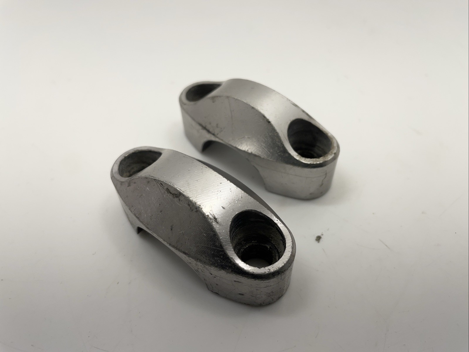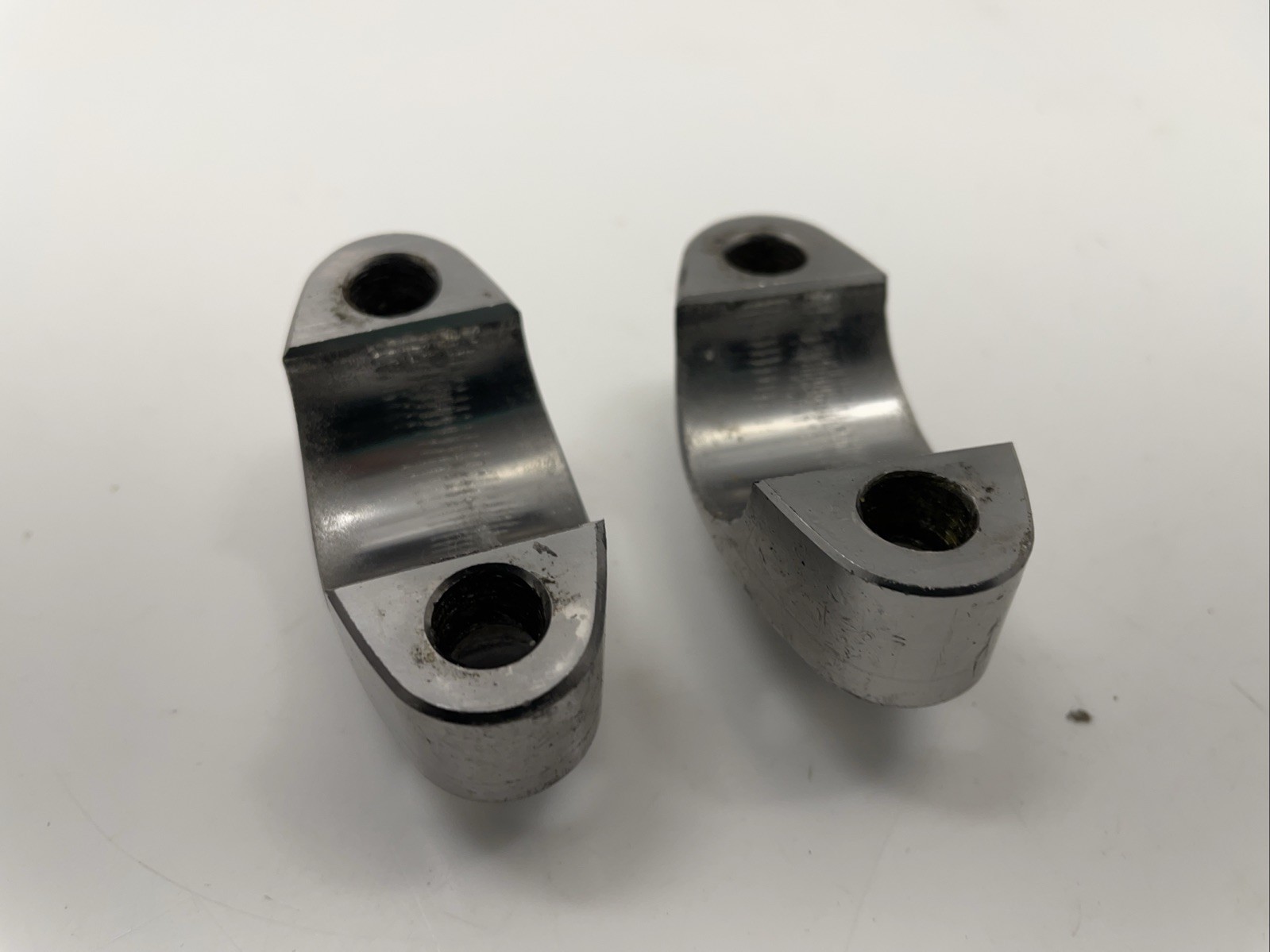 Handlebar clamps. Some light marks maybe present, please see pictures for more of a detailed view. Removed from a 2018 motorcycle.  This item comes with a 60 day warranty included.