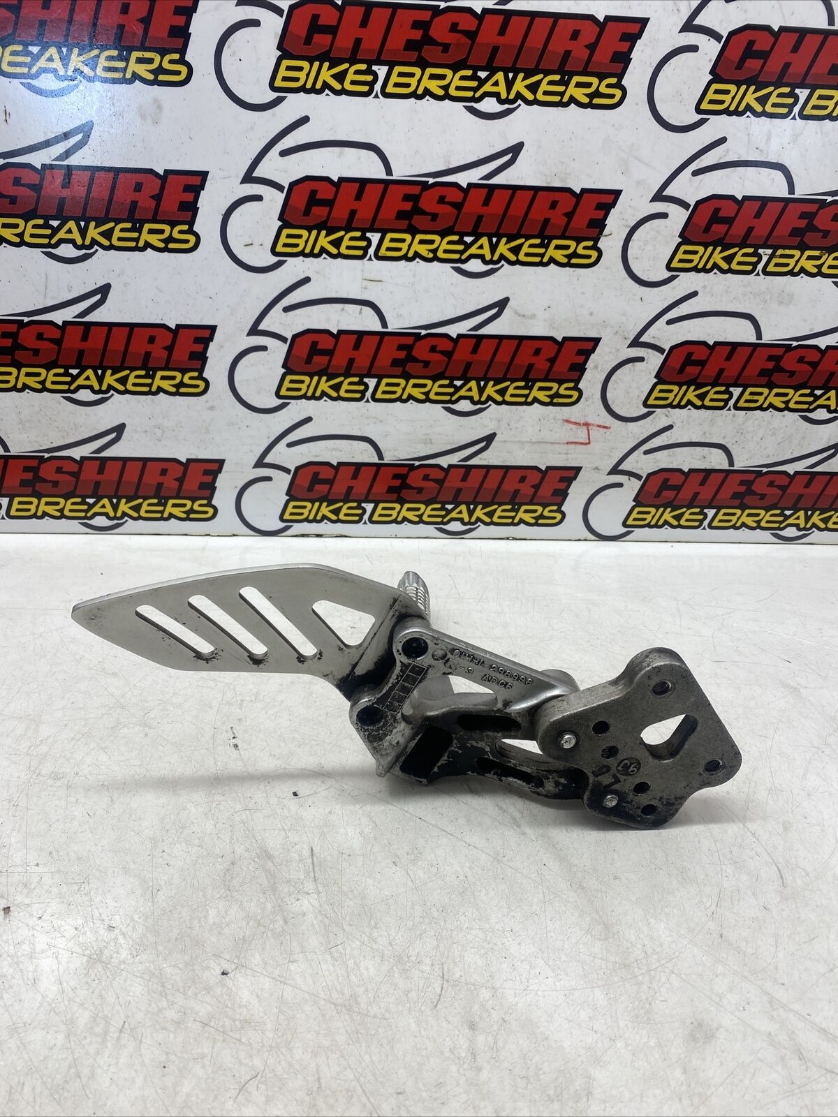 Front left side footrest peg. Some light marks maybe present, please see pictures for more of a detailed view. Removed from a 2008 motorcycle.  This item comes with a 60 day warranty included.