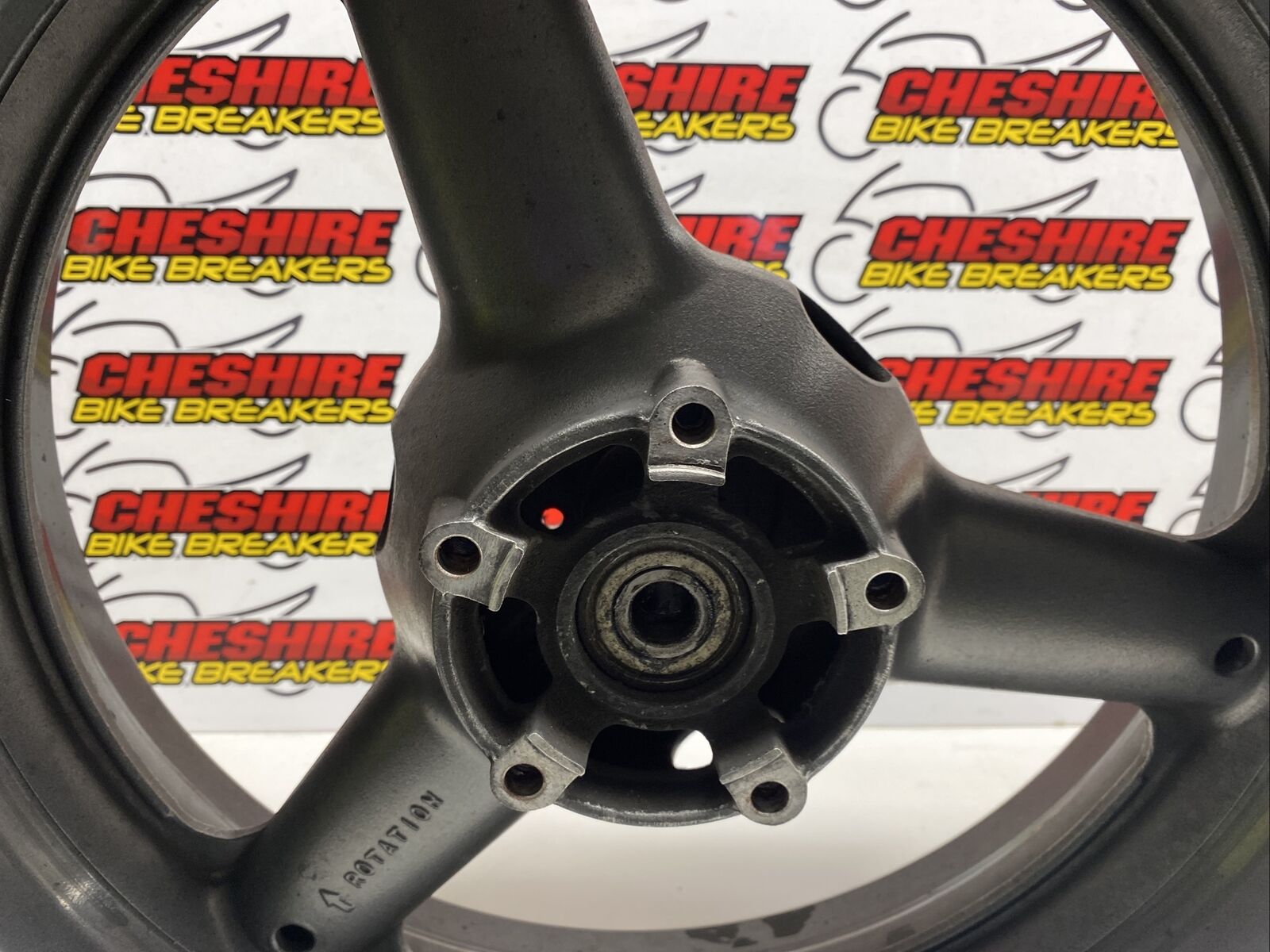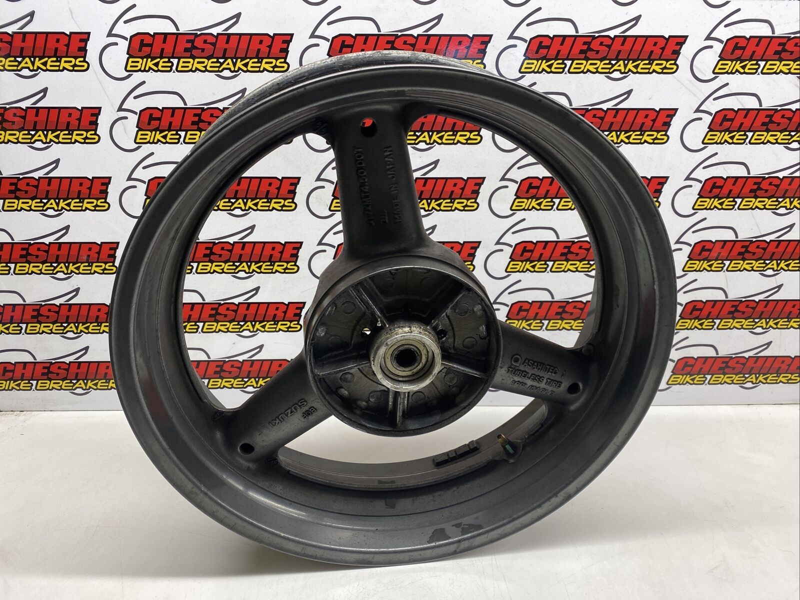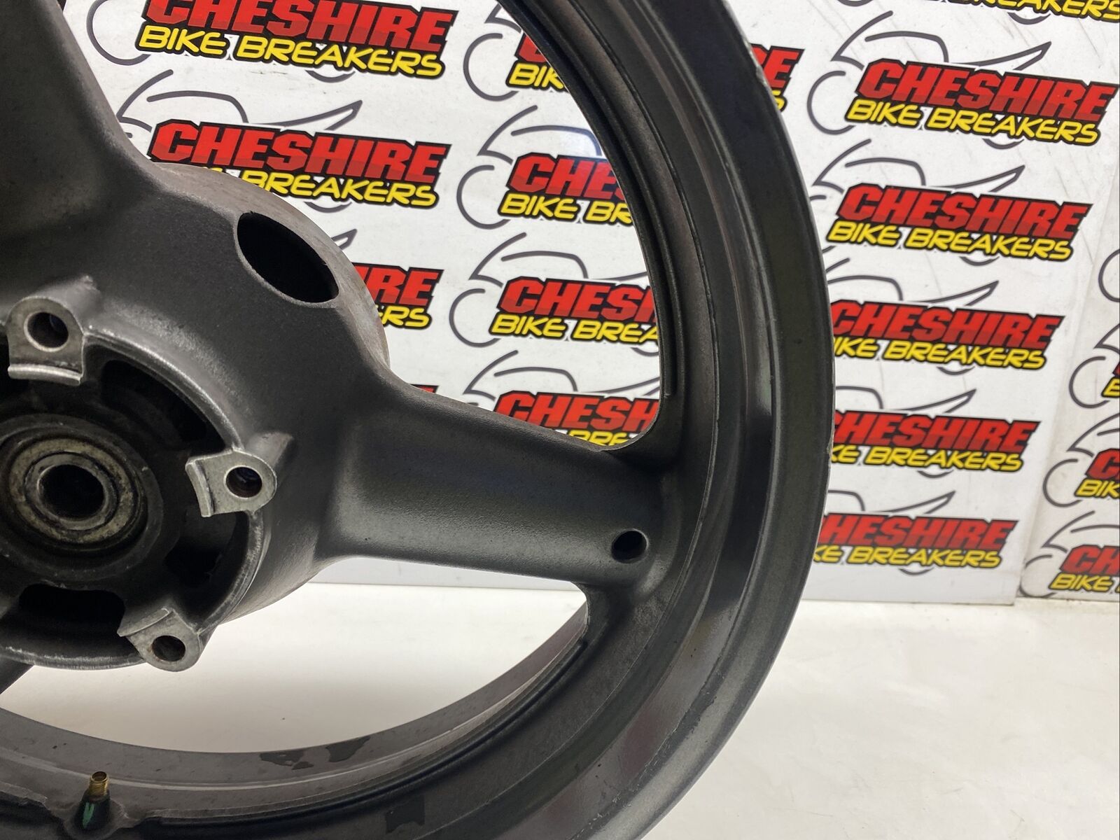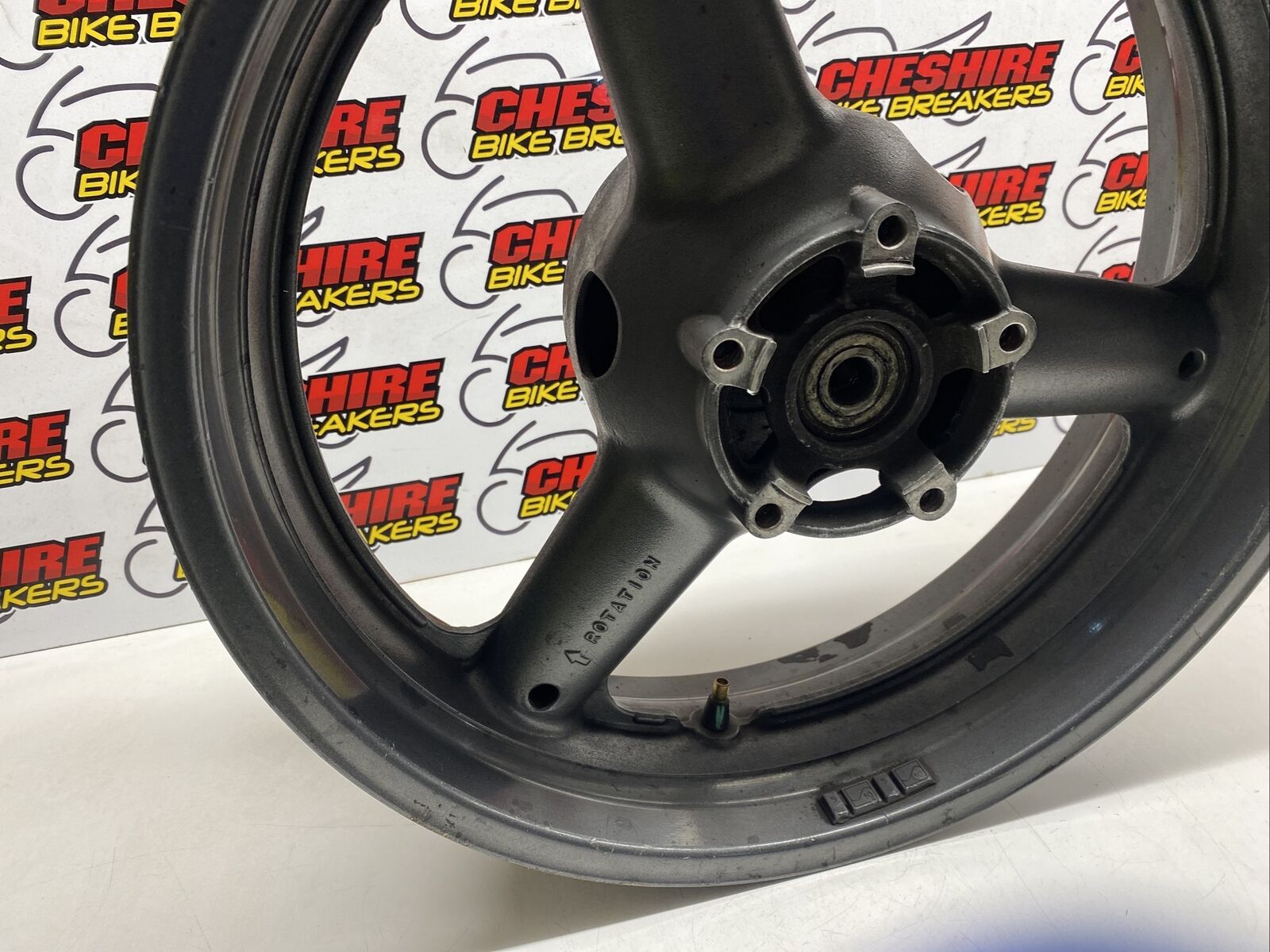 Rear wheel rim. Minor grazes to the rim present, please see pictures. Some light marks maybe present, please see pictures. Removed from a 1999 model, 21000 mile motorcycle. Comes with a 60 day warranty included.