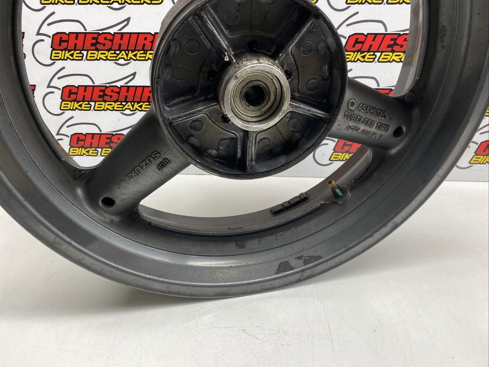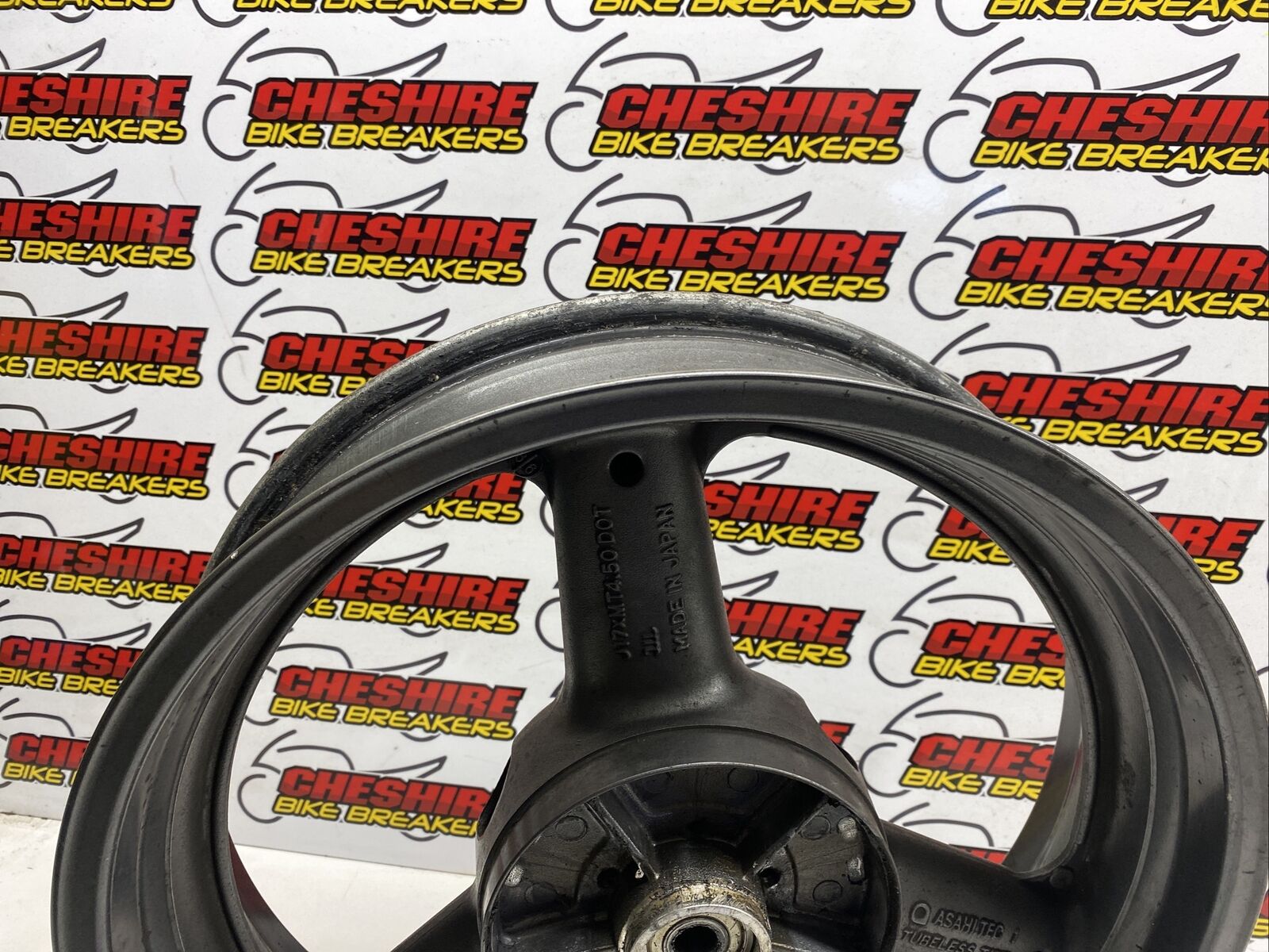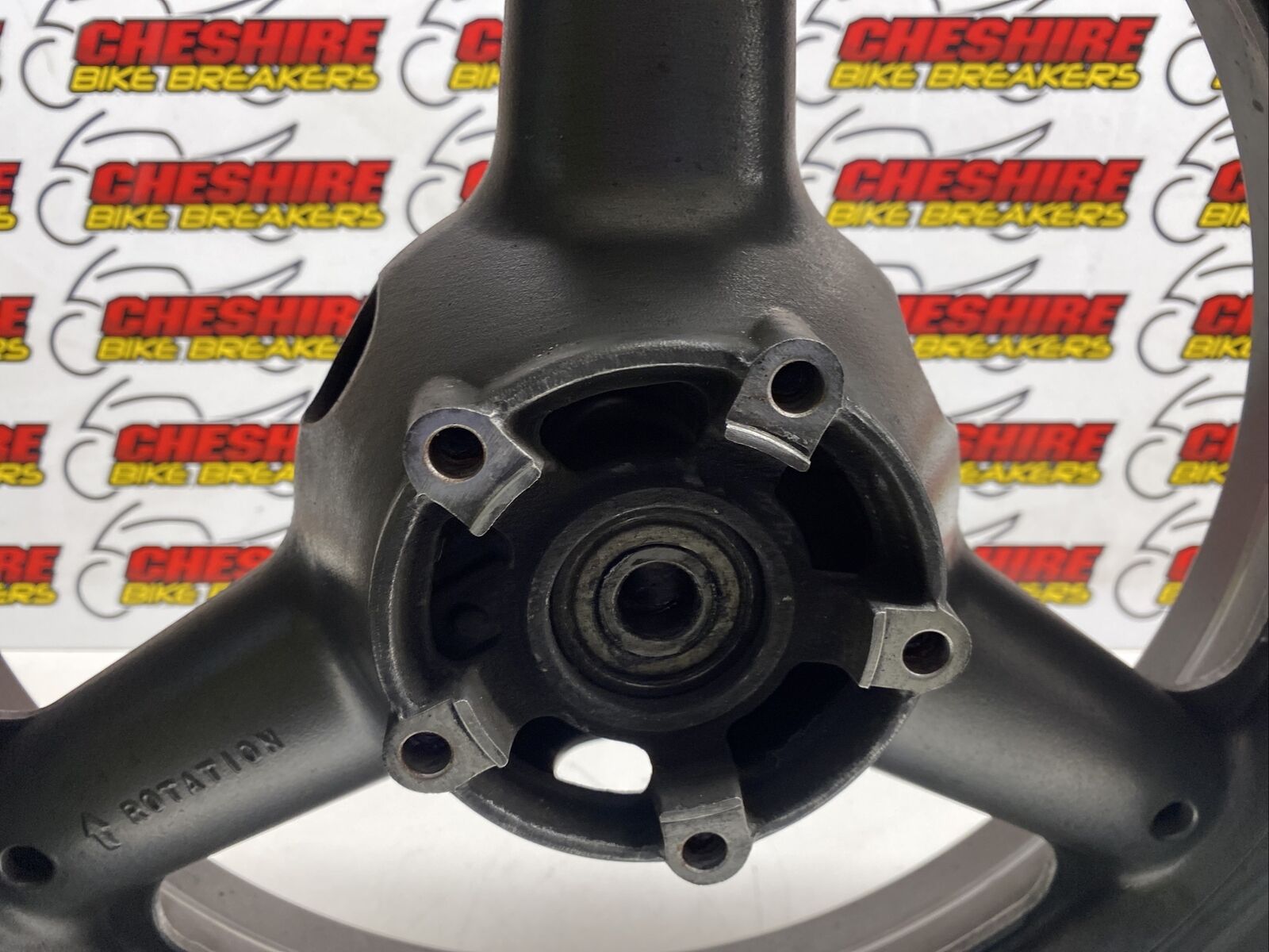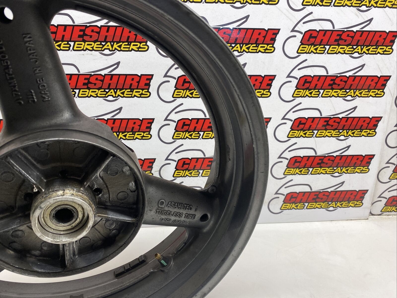 Rear wheel rim. Minor grazes to the rim present, please see pictures. Some light marks maybe present, please see pictures. Removed from a 1999 model, 21000 mile motorcycle. Comes with a 60 day warranty included.