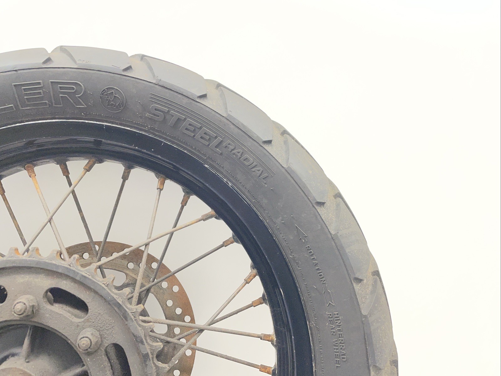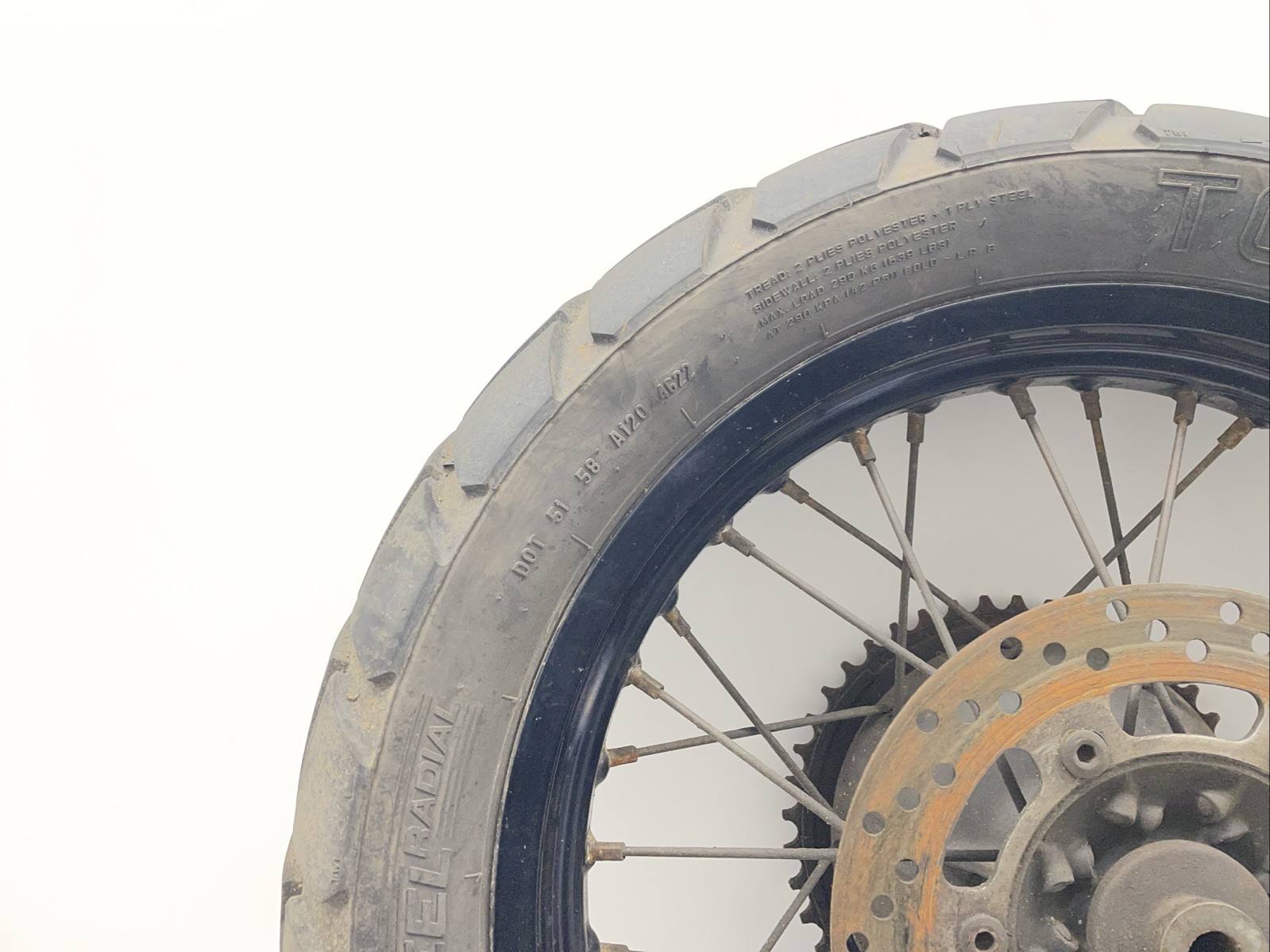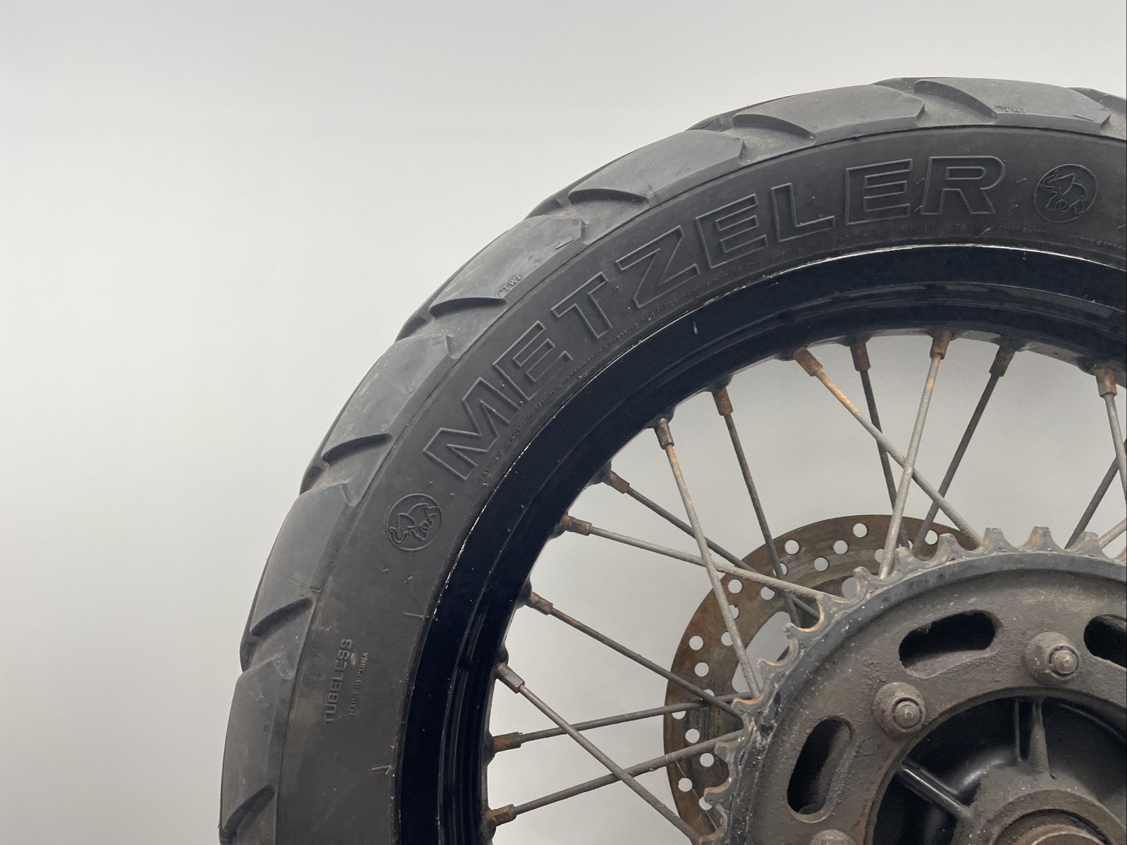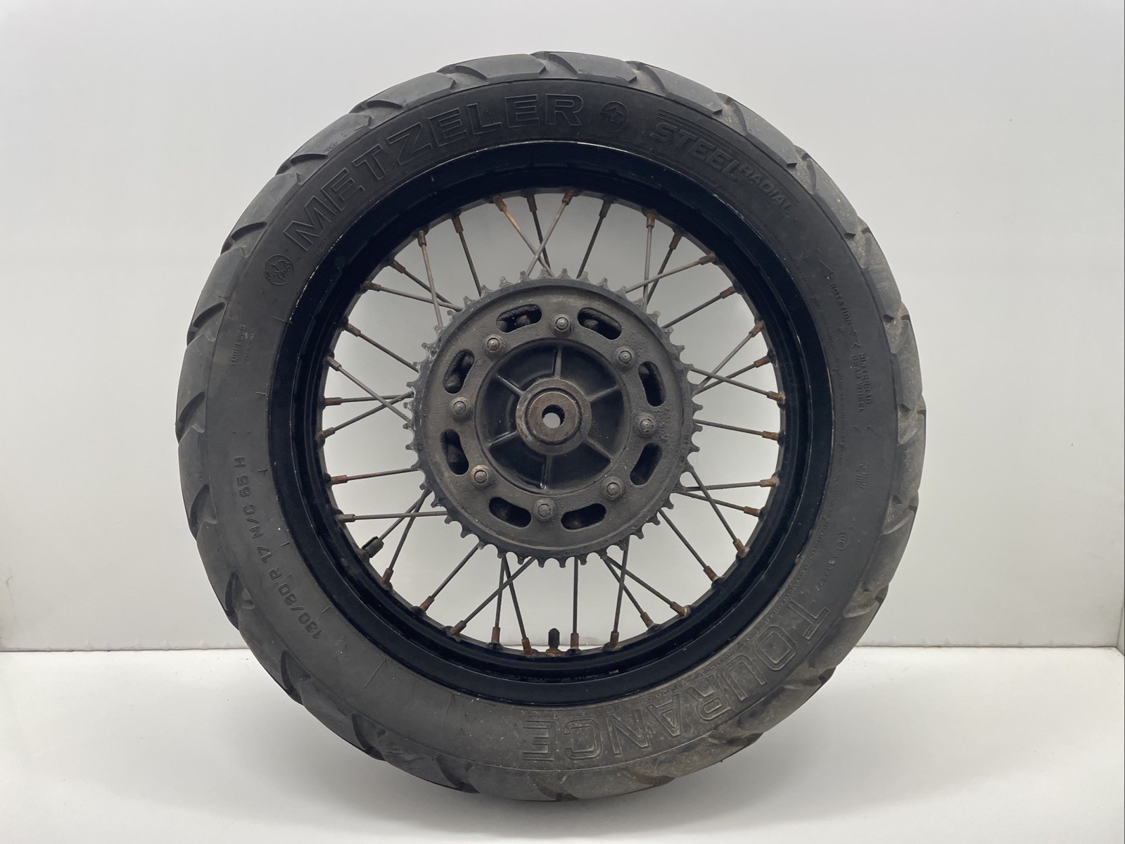Rear wheel. Disc & tyre will need replacing. Some minor cosmetic marks may be present (see photos for details)